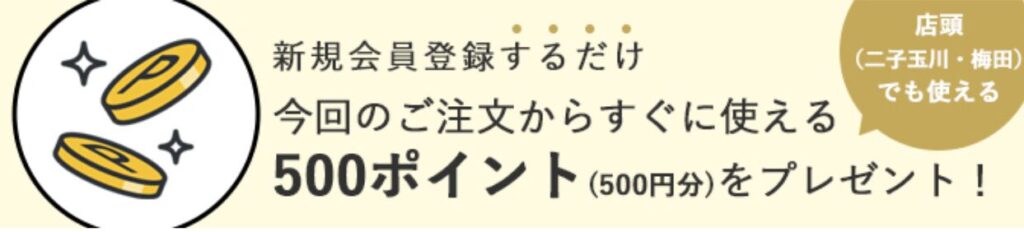 ただいまキャンペーン中につき、新規会員登録ですぐに使える500円分のポイントがプレゼントされます。